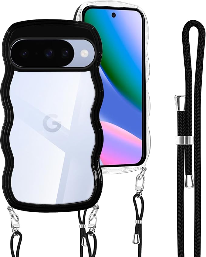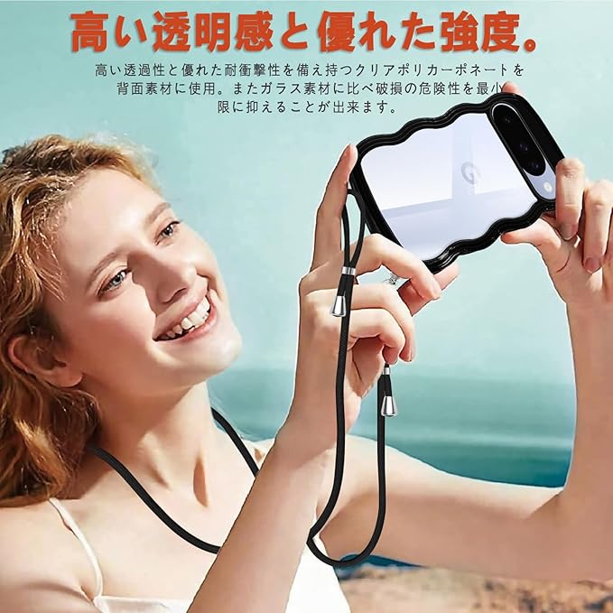 Google Pixel 10 用の ケース ショルダー Pixel 10 Pro 用の ケース クリア ピクセル10 用の カバー 斜めかけ 肩がけ 首掛け ストラップ 韓国 pixel10 用の スマホケース ブラック
