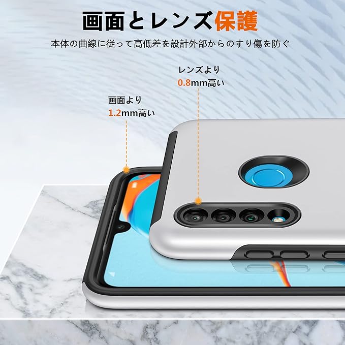 【全面保護】ソフトなTPU(シリコン)とハードなPC(ポリカーボネート)を組み合わせた2重構造方式です。フチが高低差を設計し、液晶画面とカメラレンズをキズから保護します。品質のTPUを採用し、携帯電話の落下時に受けた衝撃力を分散させ、携帯電話を有効に保護する。柔らかい素材のため、着脱も簡単で、スマホ本体への擦り傷も心配無用です。