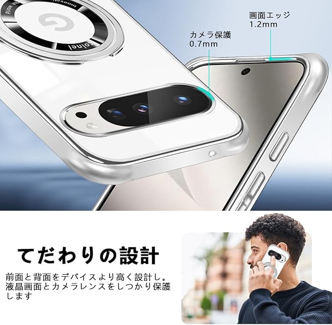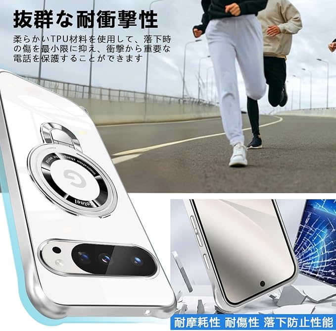 Google Pixel10 Pro XL ケース クリア ショルダー 透明 グーグルピクセル10 pro xl カバー リング付き pixel 10 pro xl カバー スタンド機能 マグネット搭載 耐衝撃 米軍規格 紐付き 斜めがけ 織りストラップ付き ネックストラップ ショルダー 縦/横 2WAY 長さ調整可能 取り外し可能 落下防止 紛失防止(シルバー)