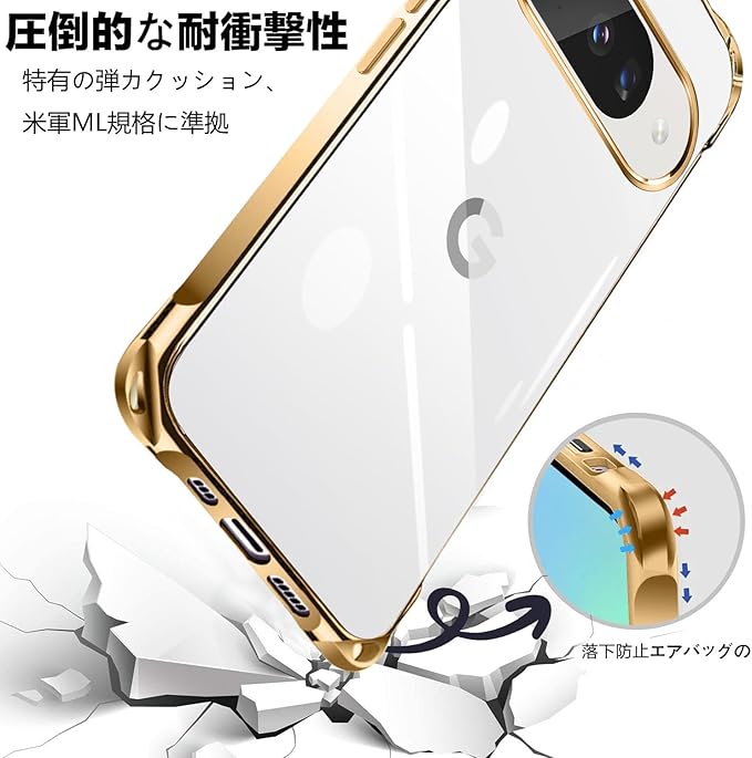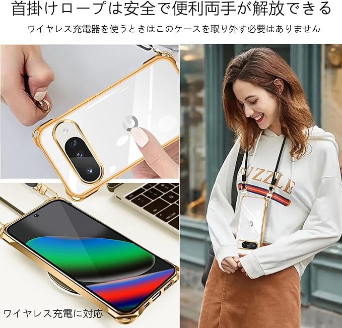 Google Pixel10 ケース クリア ネック ショルダー グーグルピクセル10 カバー 耐衝撃 対応 Pixel 10 Pro スマホケース 肩掛け 斜めかけ 縄掛け カバー メッキ加工 透明 TPU 薄軽型 ストラップ付き 携帯ケース ネックストラップ ショルダー 肩掛け 長さ調整可能 取り外し可能 落下防止 擦り傷防止(ゴールド)