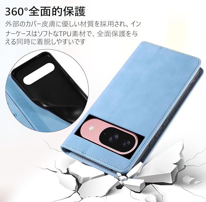 KWATUNG google pixel 10/10Pro 用 ケース pixel 9/9Pro 用 ケース 手帳型 おしゃれ グーグルピクセル10 用 ケース 手帳型 肌感レザー 内蔵マグネット 耐衝撃 カード収納 スタンド機能 googleピクセル10 用 スマホケース Pixel 9 ピクセル9プロ スマホケース Pixel 9 9Pro 10 10Pro 用 ライトブルー