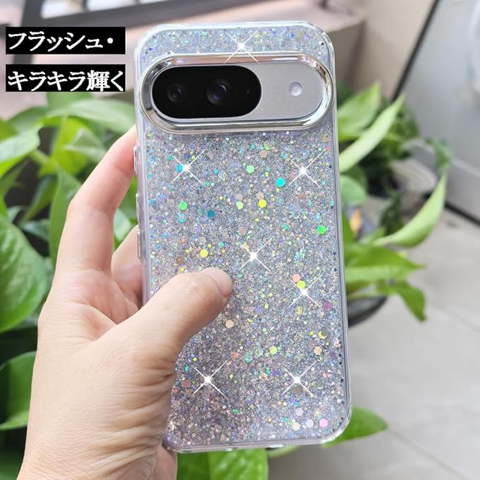 スマホケース 対応 Google Pixel 9 / 9Pro / 10 / 10Pro 兼用 ケース かわいい TPU キラキラ ブリンブリン フラッシュ おしゃれ 女性人気 美しい おもしろい キャラクター 傷防止背面 滑り止め 衝撃吸収 グルピクセル10 携帯電話カバー (シルバー)