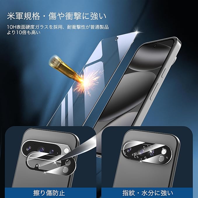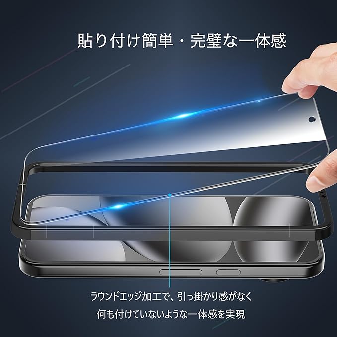 【透明度高い、高感度タッチ】10Hの硬度ですり傷からピクセル10Proの画面をしっかり保護します。その他のガラスフィルムと比べ、より強い耐久力を誇ります。優れた保護性能を提供しながらも、フィルムはわずか0.26mmの厚さで99.9%の高透過率、画面の美しさはそのまま表れます。精確なタッチ感、スライドしても引っかかり感がなく、さらさら手さわり、裸さながらの質感を実現します。画面上の操作も違和感なくスムーズに行えます。