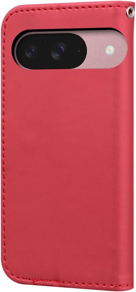 For Google Pixel 10/Pixel 10 Pro ケース 手帳型 お洒落 ピクセル10プロ/ピクセル10 スマホケース 耐衝撃 手作り 高級 PUレザー 携帯カバー 人気 おしゃれ かわいい 動物柄 カバー 軽量 スマホカバー カード収納 横置きスタンド機能 内蔵マグネット(6.3インチ)赤猫