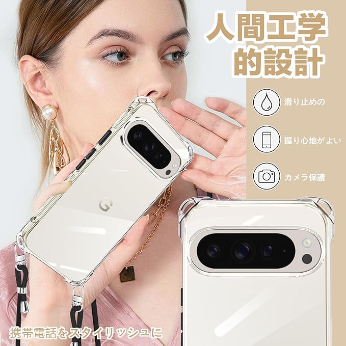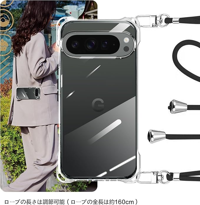 Google Pixel 10 用 ケース クリア Google Pixel 10 Pro 用 ケース ショルダー ピクセル10/10Pro 携帯カバー 耐衝撃 全面保護 スマホケース ストラップ付き 肩掛け 斜めかけ 縄掛けケース TPU 薄型 軽量 取り外し可能 落下防止 柔軟【クリア】