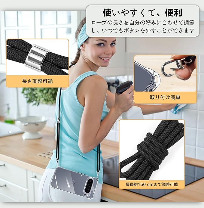 【実用・縄掛けケース】ショルダーストラップ付き、取り付けや長さ調整が非常に簡単。特にポケットのない服が多いので、外出時に肩にかけるととても便利です。ショルダーストラップは取り外し可能なので、それを使わなくても簡易的なスマホケースとして使用することができます。外出、登山、買い物、自撮り、電車内の時など日常生活からできるスマホ紛失・落下防止できるスマホネックストラップリングで両手を自由にし楽な日常ができます。