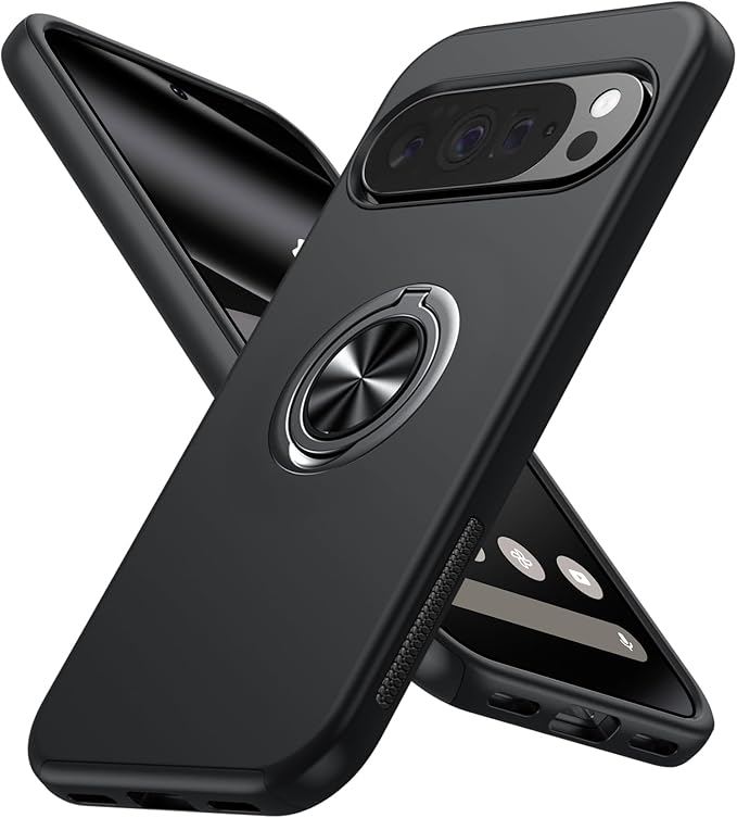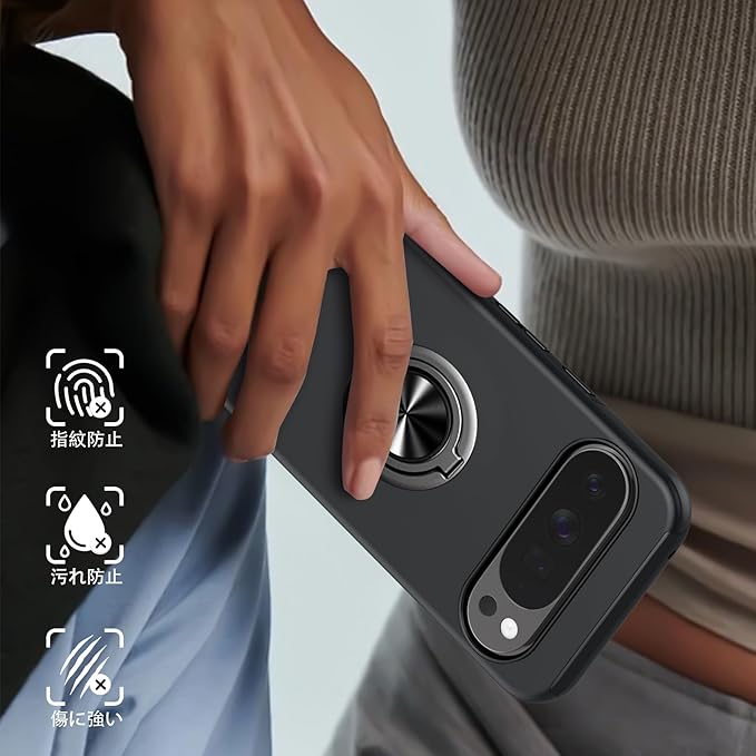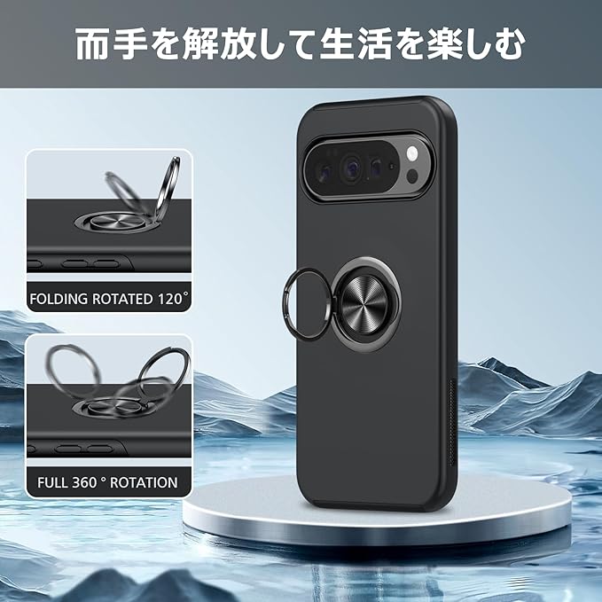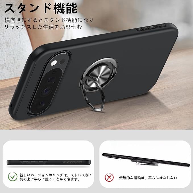 Tgaoleyd 対応Google Pixel 10/10 Pro 用のケース リング付き 耐衝撃 tpu フルプロテクトデザイン スマホカバー スタンド機能 グーグル ピクセル10/10 pro 用のケース 全面保護 擦り傷防止 落下防止 米軍MIL規格 車載ホルダー対応 取り出し易い オシャレ 人気 携帯カバー 黒 D-A09-47