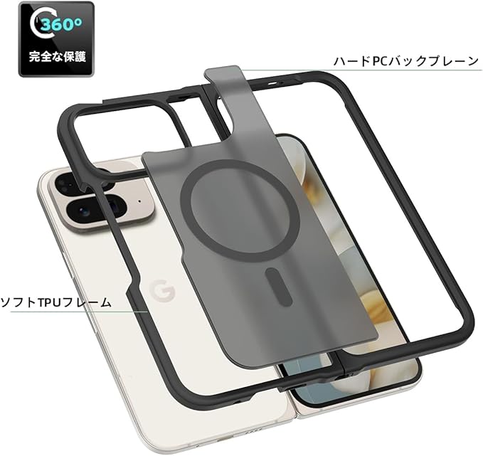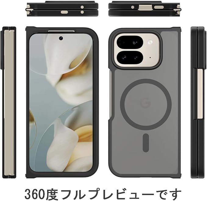 対応Google Pixel 10Pro Fold クリアケース【無線充電/PC背面 + 柔らかい TPUバンパー】全面保護カバー マット感 指紋防止 擦り傷防止 衝撃吸収 すり傷防 カメラ保護 背面 ンプロテクター シェル 軽量 薄型 【マット 半透明 Pixel 10 Pro Fold 5G 折りスマホケース 黄ばみなし】シンプル レンズ保護 高耐久性 脱着簡単 4色 ブラック