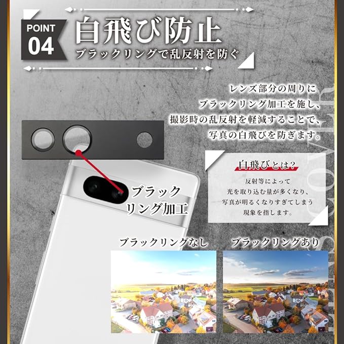 【高品質なカメラレンズフィルム】レンズフィルムは日本のAGC旭硝子を使用し、表面はフッ素コーティング、プラズマ溶射処理を施しています。本体カメラを全面覆うフルガードタイプです。