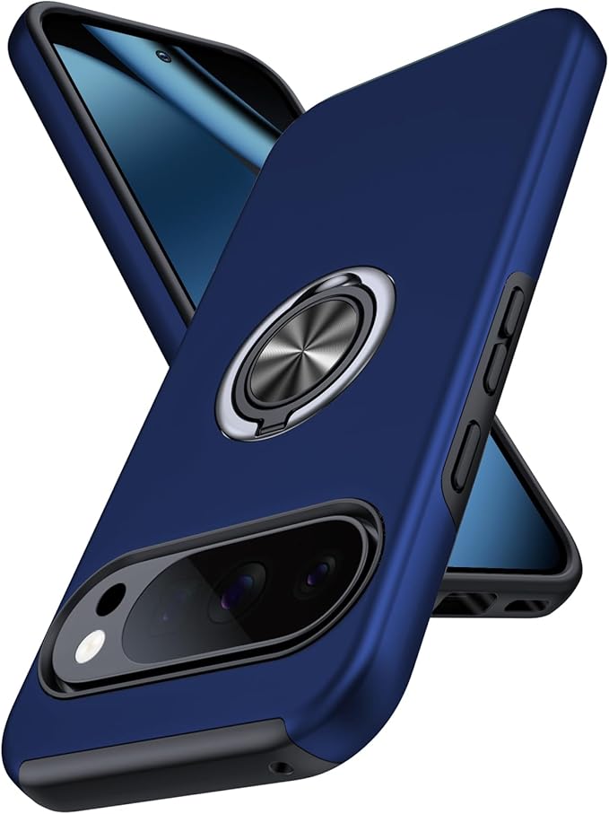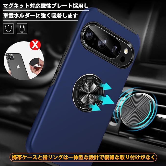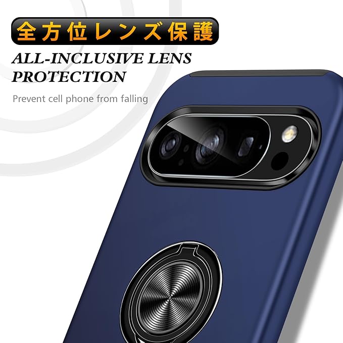 Google Pixel 10 / Pixel 10 Pro 対応 ケース リング 耐衝撃 米軍MIL規格取得 TPU+PC 衝撃吸収 カバー レンズ保護 リングつき 指紋防止 360 回転 車載ホルダー対応 スタンド機能 防塵 薄型 落下防止 擦り傷防止 10/10 Pro 携帯電話カバー 青C85-pix10-03
