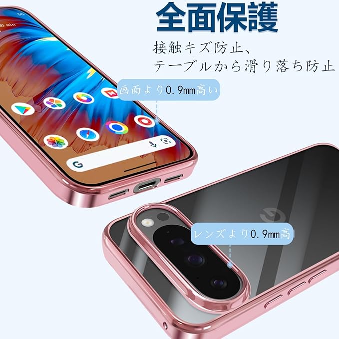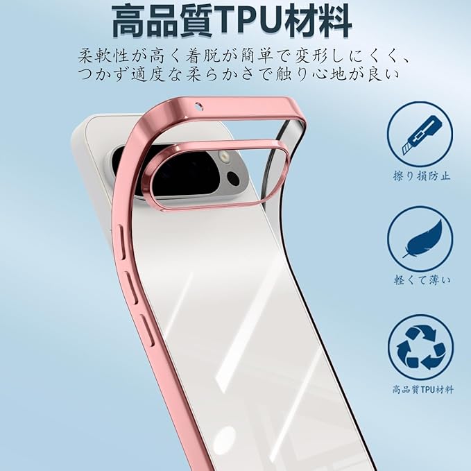 Google Pixel 10 / 10 Pro ケース クリア 薄型 TPU 耐衝撃 ソフト 黄変防止 指紋防止 ストラップホール付き グーグルピクセル 10 / 10 Pro カバー ワイヤレス充電対応(ローズゴールド)