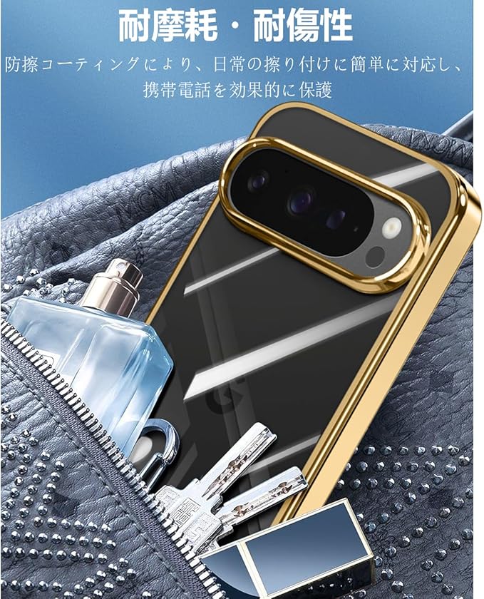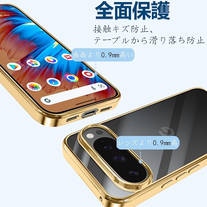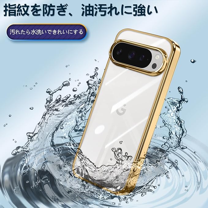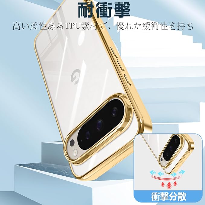 Google Pixel 10 / 10 Pro ケース クリア 薄型 TPU 耐衝撃 ソフト 黄変防止 指紋防止 ストラップホール付き グーグルピクセル 10 / 10 Pro カバー ワイヤレス充電対応(ゴールデン)
