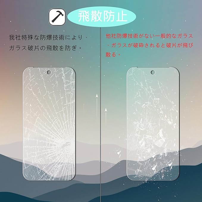 【ハードコート加工、飛散防止】:衝撃で割れても飛散せず、ユーザーの身の安全を守る日本製素材の強化ガラスを採用