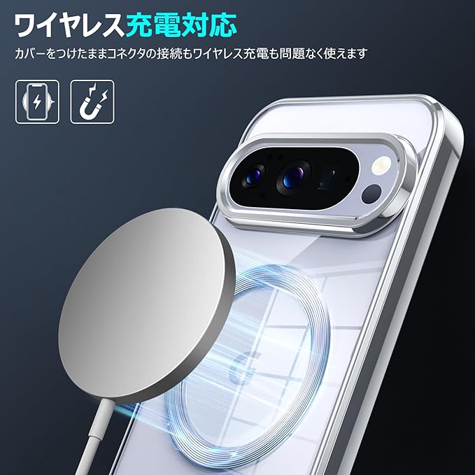 Google Pixel 10/Pixel 10 Pro 用ケース Magnetic対応 ワイヤレス充電 軽薄型 TPU ソフト グーグル ピクセル 10/10 pro用スマホケース マグネット搭載 耐衝撃 米軍MIL規格取得 黄変防止 耐久性 ストラップ穴付き おしゃれ 携帯カバー 銀 D83-14 CP