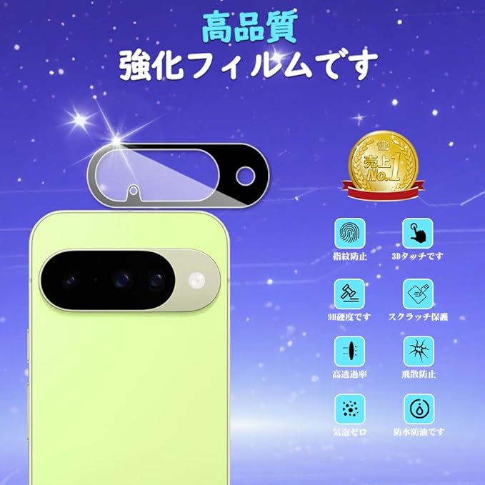 対応 Google Pixel 10 用 カメラフィルム (2枚入り) 強化ガラス レンズ 液晶 カメラ保護フィルム 硬度9H 国産硝子素材