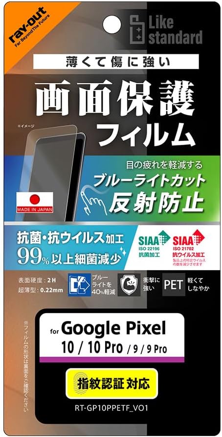 レイ・アウト Google Pixel 10用 フィルム ブルーライトカット 目に優しい グーグルピクセル10 Pixel10 GooglePixel 10pro 保護フィルム 指紋認証対応 さらさら ゲーム 操作性