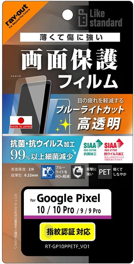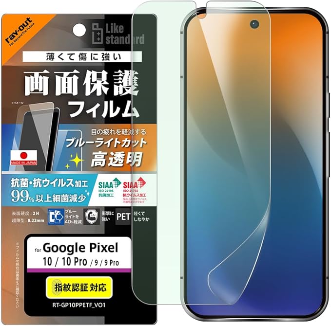 レイ・アウト Google Pixel 10用 フィルム ブルーライトカット 目に優しい グーグルピクセル10 Pixel10 GooglePixel 10pro 保護フィルム 指紋認証対応 ブルーライト低減 光沢