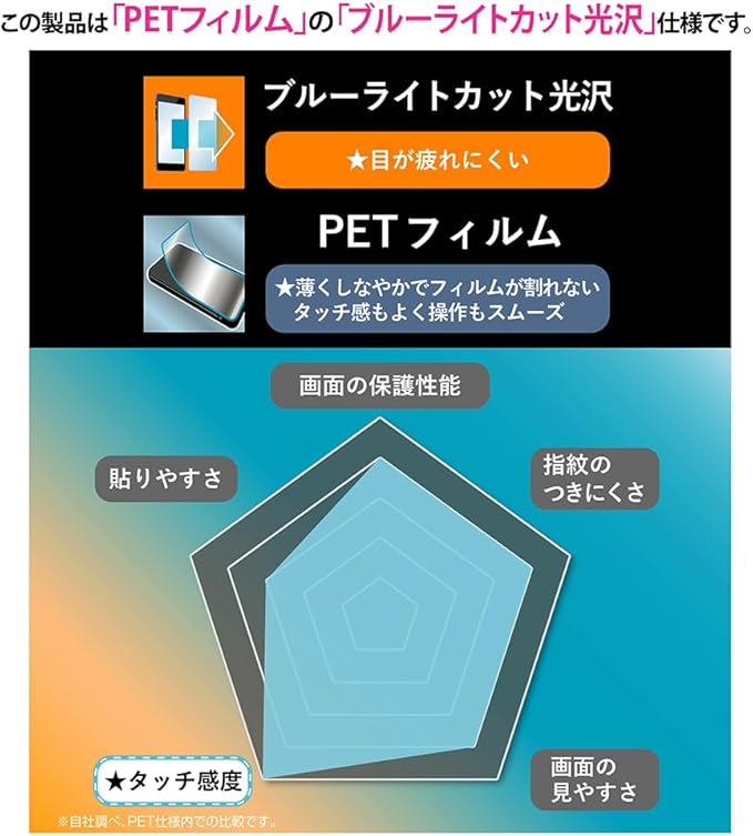 特徴 ブルーライトブロック, 耐傷性, 耐汚性, 高精細な鮮明度