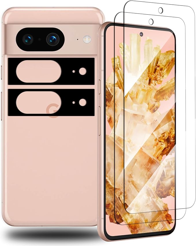 google pixel 8 ガラスフィルム+ピクセル8 カメラフィルム【旭硝子日本製】指紋認証対応 硬度9H 耐衝撃 スクラッチ防止 自動吸着 露出オーバー防止 気泡ゼロ 指紋防止 グーグルピクセル8 保護フィルム「2+2枚入」