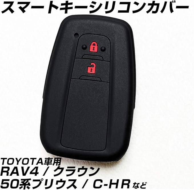 【IKT】トヨタ車用 スマートキー用シリコンカバー 2ボタン ブラックレッド / プリウス50系 / RAV4 / クラウン/カムリ/C-HR/ランドクルーザープラド/カローラスポーツ/など 専用設計 傷防止 さらさらシリコン TOYOTA車用 (TS-023BKRE)