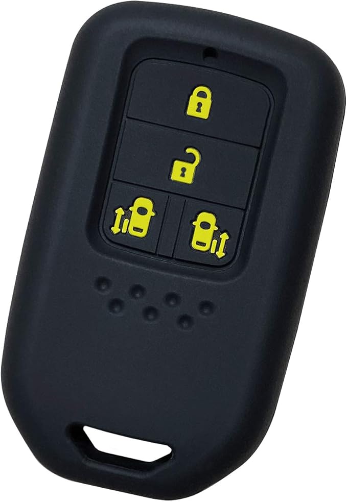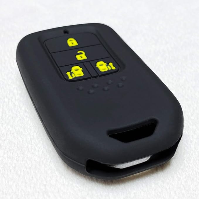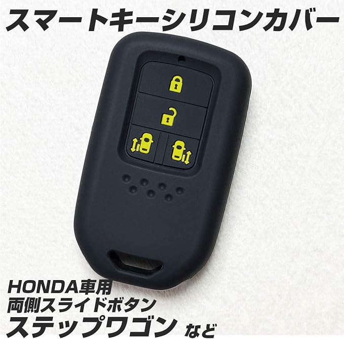 【IKT】ホンダ車用 スマートキーシリコンカバー 両側スライドボタン車用 4ボタン ブラックイエロー/ステップワゴン/ステップワゴンスパーダ (ハイブリッド)/ フリード/フリード ハイブリッド/フリード+ / フリード+ ハイブリッド/オデッセイ/オデッセイ ハイブリッド/など 専用設計でピッタリサイズ!傷防止に最適!さらさらシリコンで手触り快適!本田HONDA車用 (HS-002BKYL)