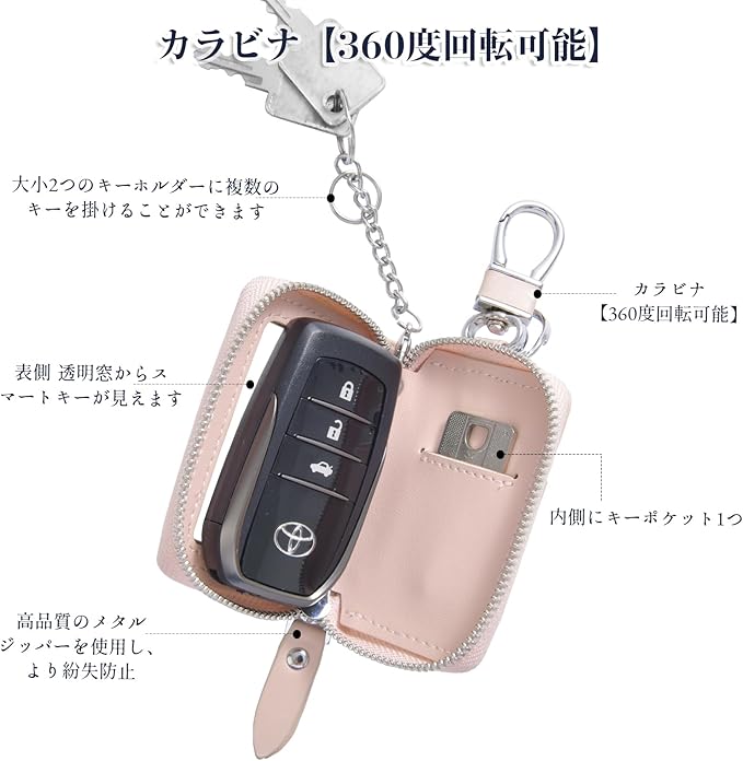 【スマートキーケース】本革:高強度と厳格なテストにより、より長い耐用年数を保証する、ハイエンドでファッショナブルでシンプルな大型リングキーケースを作成します。 【スマートキーを差し込んで操作】透明窓付きなので、スマートキーを取り出さなくてもボタン操作が可能です。 【便利なキーポケット付き】内側には深めのキーポケットが付いています。キー同士がぶつからないので安心です 【取り外し可能なキーホルダー】リングカラビナ1個&キーホルダー大1個、キーホルダー小1個:カラビナリング2個】家族間や車の点検時などに鍵を守るのに便利です。鍵を持ち歩くのに最適【様々なシーンで使えます。大きい方はバッグに付ける時と、ショルダーストラップに付ける時とで使い分けが可能です。大サイズ:直径3.5cm 小サイズ:直径2.3cm 車や家のスマートキーを2つ掛けられます。頑丈!盗難を防ぐ紛失防止機能