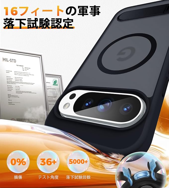 【全方位耐衝撃・防摔保護】 本ケースはアメリカ国防省 MIL-STD-810G 耐衝撃テスト基準を満たし、耐衝撃性能は前モデルより 30 倍向上!Pixel 10/10 Pro を衝突、引っかき傷、不意の落下から保護します。高さを高めたエッジ設計で、スクリーンとカメラを同時に保護し、安心して使用できます。