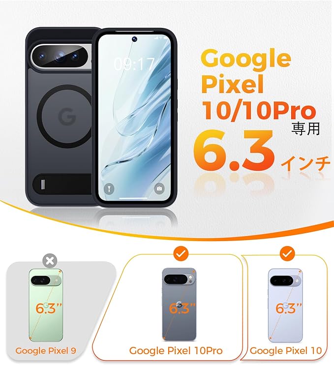 【強力マグネット充電対応】 本製品の Google Pixel 10/10 Pro ケースには強力なマグネットリングが内蔵されており、Mag-Safe 対応のすべての充電器とアクセサリーにしっかり吸着できます。いつでもどこでも、高速・安定・信頼性の高いワイヤレス充電を享受できます。また、カーマウントとしても兼用可能で、ドライブ中の使用に便利です。