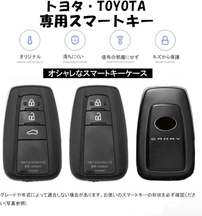 【適応車種】トヨタ TOYOTA 新型プリウス(PRIUS)50/ 2018.6 新型クラウン( NEW CROWN) /C-HR (CHR )/新型 RAV4 /ランドクルーザープラド(LAND CRUISER PRADO )150 後期/2017.9 トヨタ( Toyota) 86/カムリ (CAMRY )70 等に適応します。注意: プリウス令和5年式(2023) MXWH60に適応しません。 ⁂グレードや年式によって適合しない場合があります。お使いのスマートキーの形状を必ず確認ください(写真参照)