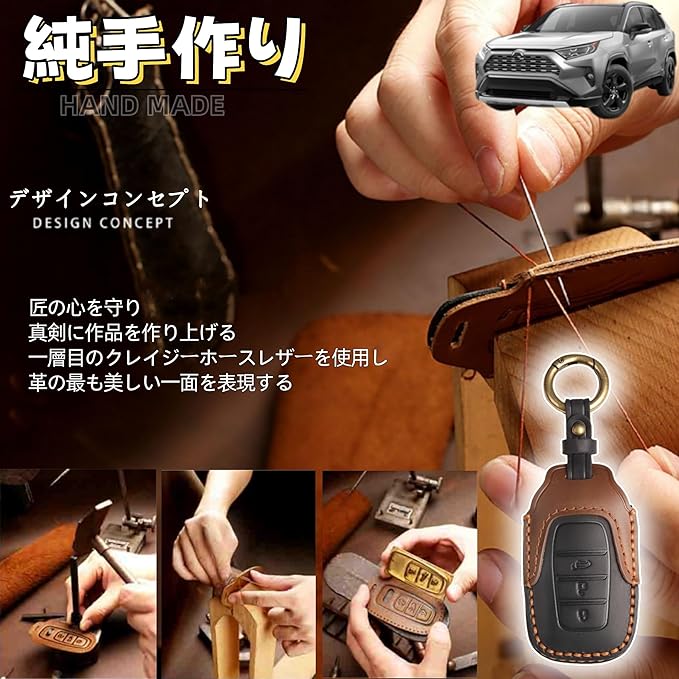 [TatkDIY] 適用新型RAV4 50系 専用 キーケース 本革キーカバー ラブ4 カスタムパーツ カーアクセサリードレスアップ 内装パーツ 落下キズ防止