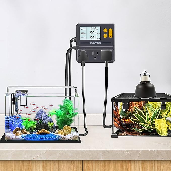 DIGITEN タイマーサーモスタット 昼と夜の温度コントローラー 爬虫類サーモスタット 醸造温度コントローラー 鳥サーモスタット 加熱冷却 110Vタイミング 温度制御アウトレット