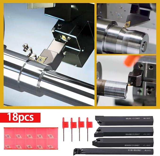 材質:合金鋼 インサート:DCMT070204 材質:カーバイド 機械加工プロセス:仕上げと半仕上げ 数量:10個/箱 1)S12M-SDUCR07: シャンク径:12mm 全長:150ミリメートル 方向:右手 分 内径:17ミリメートル 2)SDJCR1212H07: シャンクスクエア径:12mm 全長:100mm 方向:右手 3)SDJCL1212H07: シャンクスクエア径:12mm 全長:100mm 方向:左手 4)SDNCN1212H07: シャンクスクエア径:12mm 全長:100mm 方向:ストレート リード角:62.5 パッケージは以下を含みます: 1 S12M-SDUCR07ボーリングバー 1 SDJCR1212H07ボーリングバー 1 SDJCL1212H07ボーリングバー 1 SDNCN1212H07ボーリングバー 10 DCMT070204超硬インサート 4 レンチ パッケージなし、簡易梱包です。