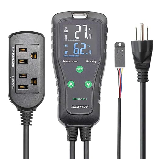 DIGITEN温度および湿度コントローラーDHTC-1011温湿度コントローラー 爬虫類テラリウムキノコ温室自作発酵用の配線済みデュアルステージアウトレットデジタルサーモスタット湿度計