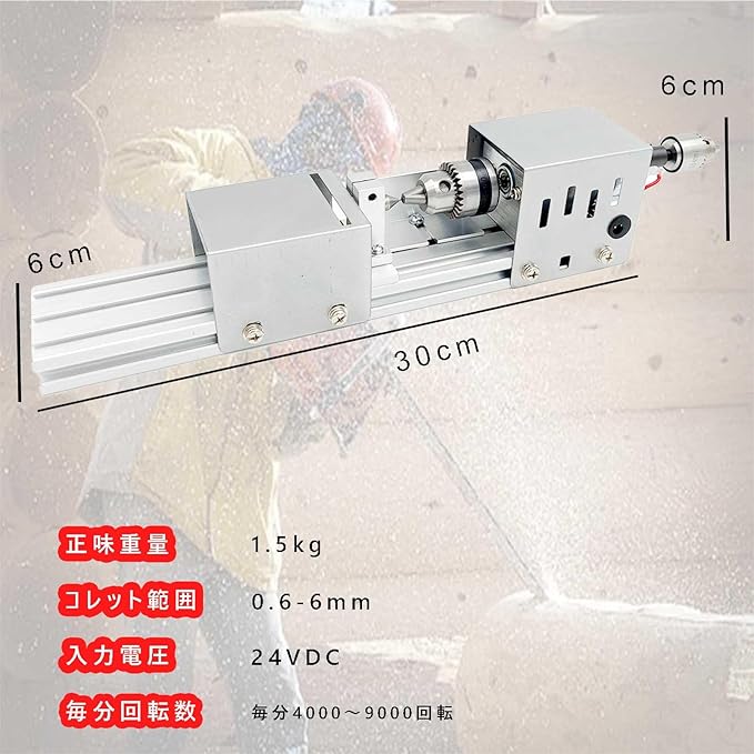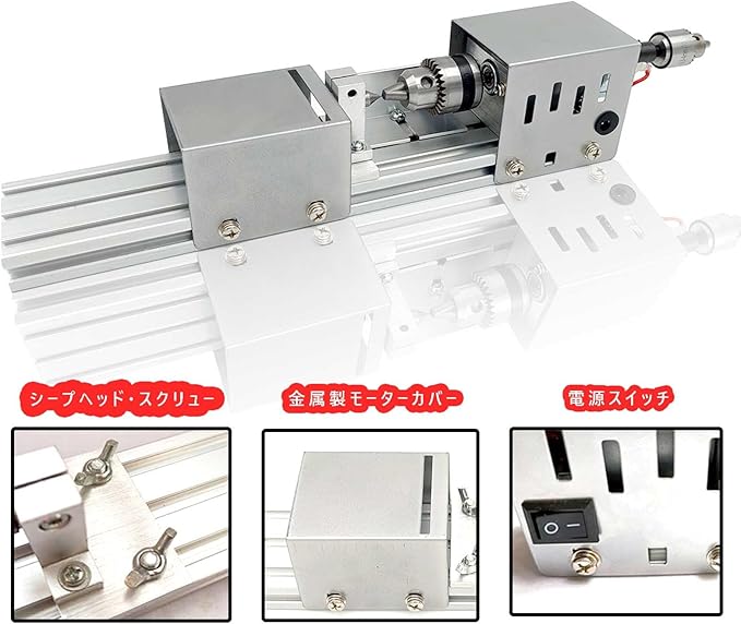 【製品仕様】旋盤サイズ:33*6*7CM。重量:1.5KG。材料:モーターカバー:鉄。 ベース:アルミニウム合金、モーター:銅。 速度:2000~8000rpm 速度調整:7段階。 ドリルチャック範囲:0.6mm-6mm.最大鋸刃径:50mm.最大クランプ長さ:140mm。