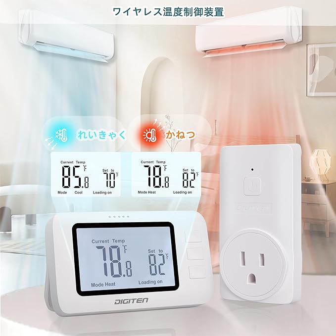 DIGITEN ワイヤレスサーモスタット WTC100 プロ温度コント ローラー冷房 & 暖房、リモコン コンセント、使いやすい、プログラム不可能なサーモスタット家庭用,ホワイト,ワイヤレスRFリンク