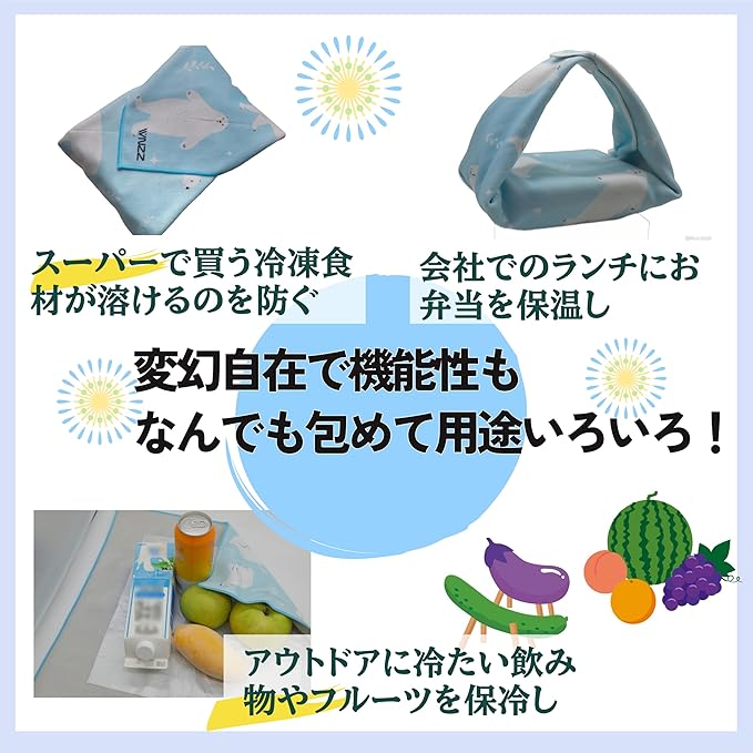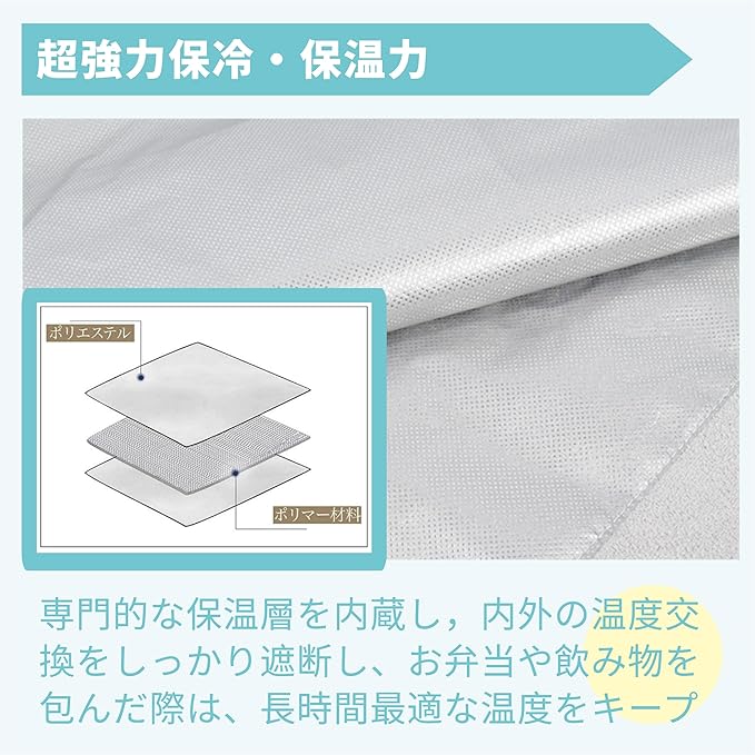✅ 【50cm 50cmの大サイズ!】特製50cm大判風呂敷デザイン、日常通勤・ピクニック・キャンプ・ドライブ・ショッピングまで超便利。一枚持っていれば、なんでも包める!内部の保冷エリアは正方形デザインを採用され、縁のスペースは粘着性機能を保留し、手持ちの保温袋などを自由に作ることができます。使用方式は更に多様です。
