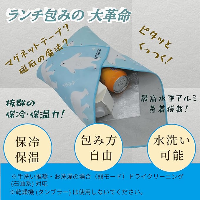 風呂敷 保冷 ランチクロス 大判 お弁当バッグ 包み 巻くだけ保温保冷 お弁当袋 保冷バッグ 収納袋/整理袋/弁当箱/化粧品・カメラ・タブレット・その他の日用品収納としてもOK 横50 縦50cm シロクマ [並行輸入品]