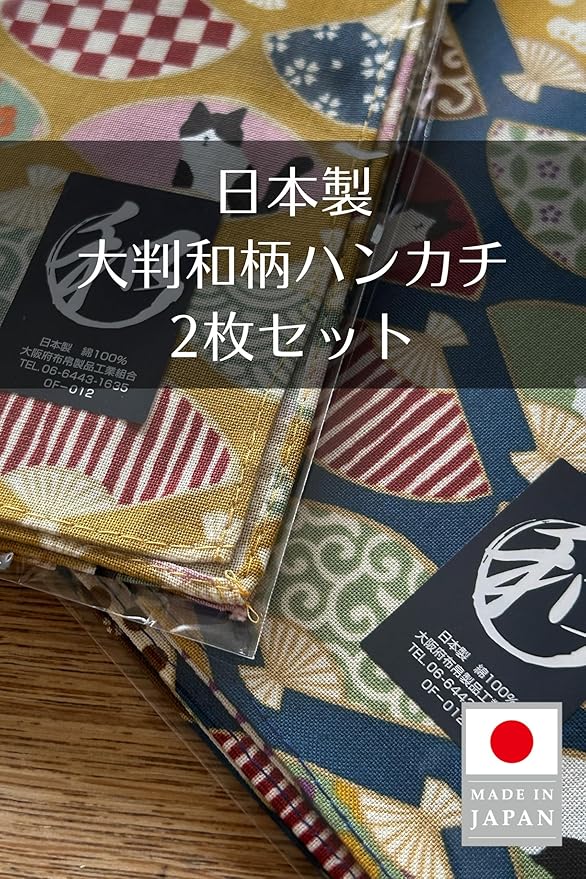 [ママゆるり] 日本製 和柄大判ハンカチ2枚セット メンズ バンダナ 和風 綿100% 国産 ギフト 着物 浴衣 内祝い