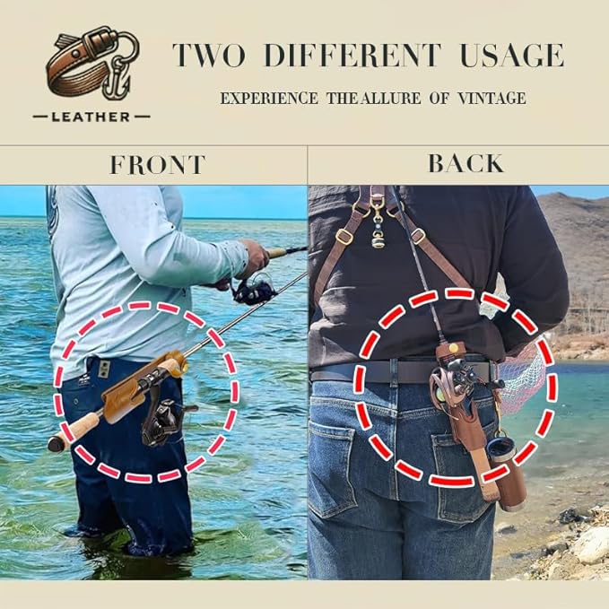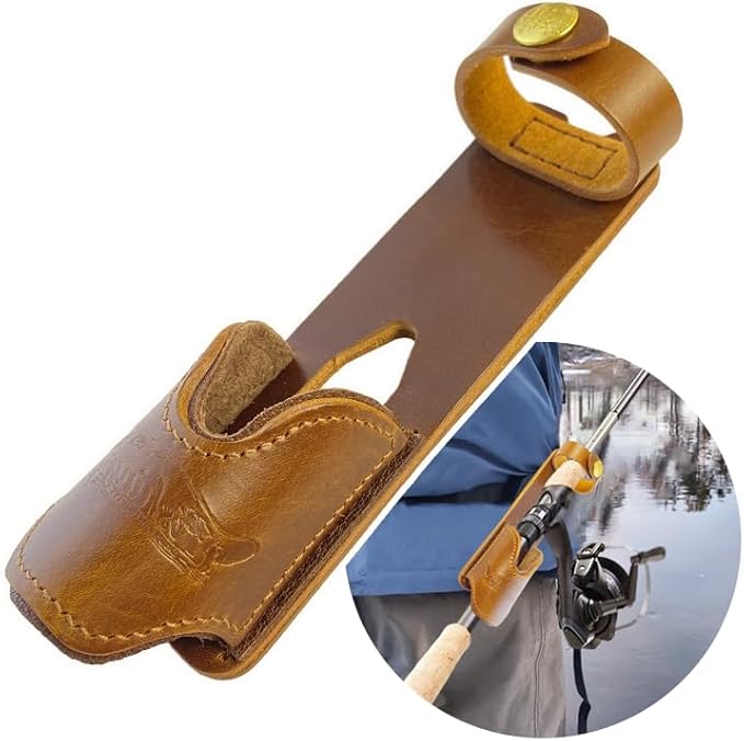 ベルト用釣り竿ホルスター、本革、釣りポールホルスター、フライフィッシングポールホルスター、ミニマリストデザインのコンパクトサイズ、超軽量