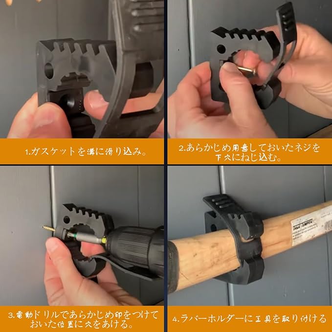 スコップホルダー 29mm~35MMの直径の工具に適用 ショベルホルダー クイッククランプ 壁面取付 スコップ 懐中電灯 釣り竿 ツール固定用クランプ (ブラック, 4個セット)