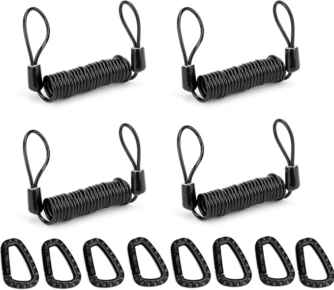 【セット内容】4個セット(カラビナ8個、カールコード4個) 車や竿に接触しても傷付けにくい樹脂製のカラビナを採用。