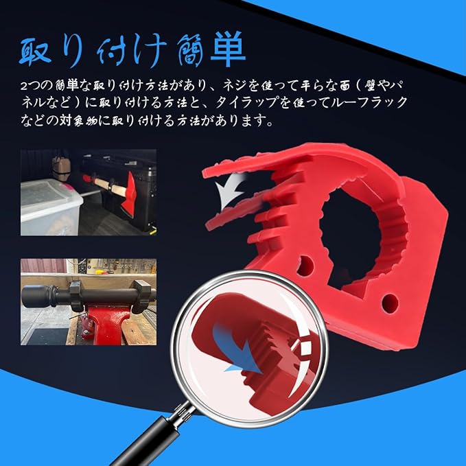 【適用対象】このスコップホルダーは29mm~35MMの直径の工具に適合します。スコップ、シャベル、スレッジハンマー、バール、ボルトカッター、パイプレンチ、牽引ロープ、懐中電灯、傘、その他の農業用工具などの固定や取り付けにも適しています。
