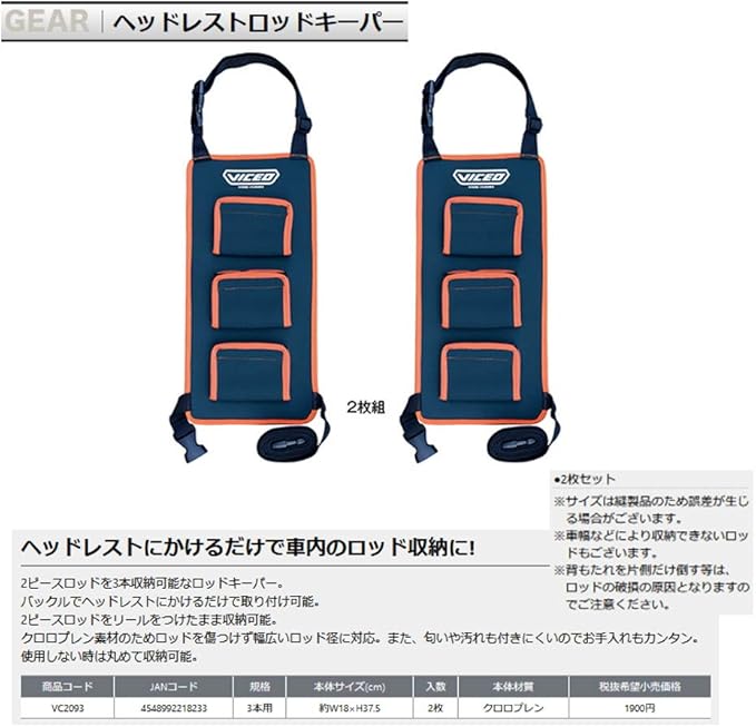2ピースロッドを3本収納可能なロッドキーパーが登場☆バックルでヘッドレストに掛けるだけの簡単設置が出来るロッドキーパー。
