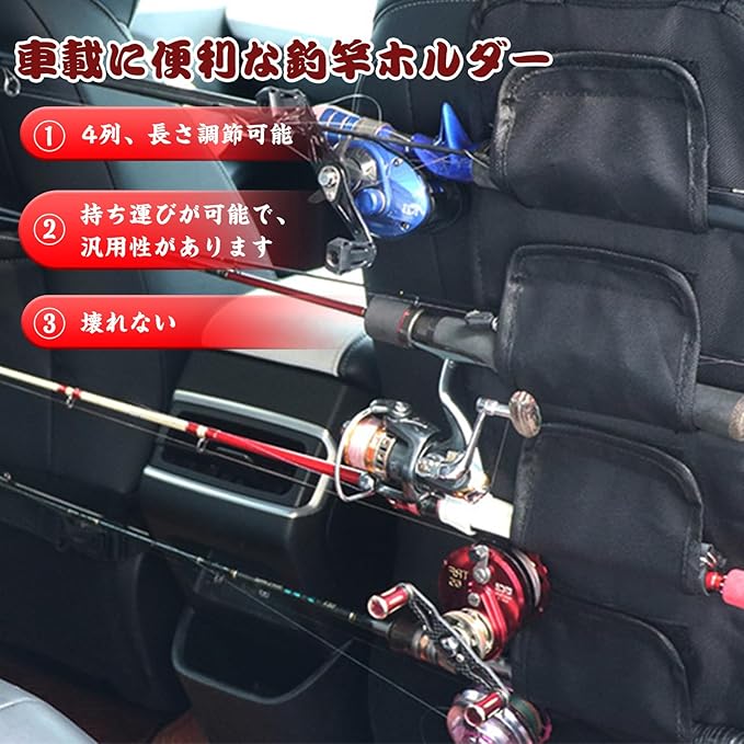車両釣り竿ホルダー 車のポータブル釣り竿ホルダー 釣り用収納バッグ 釣り ロッドベルト 車載 釣り竿ホルダ 釣り竿ベルト収納釣竿セットホルダー 車釣りロッドセーバー 釣り ロッドベルト 保護ベルト 車釣り道具 4極を保持