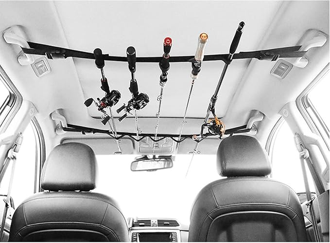 車の天井部分に釣り竿を5本収納できる車載用ロッドホルダーベルトタイプです。高粘着ベルクロで釣り竿をしっかり固定できます。取付けベルトは110~155cm調整可能で様々な車種に適応します。フィッシング、BBQ、キャンプなど多様なシーンでご活用いただける車載用ロッドホルダーです。限られた車内スペースの有効活用にお役立てください。