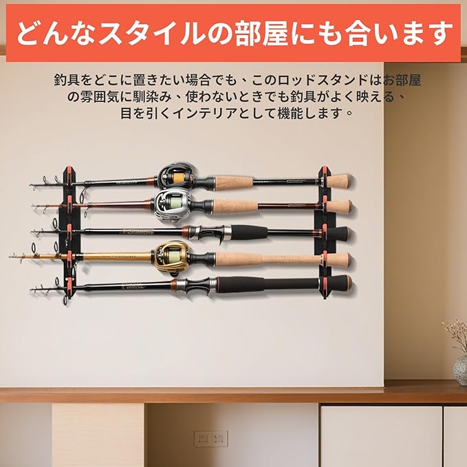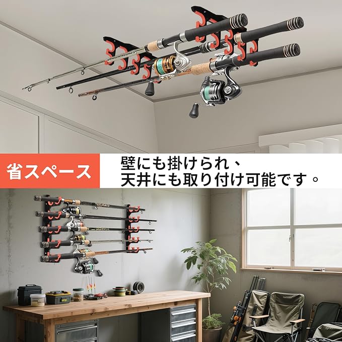 【省スペース壁掛け設計】床置きスペースを一切使わない、画期的な壁掛け式のロッドスタンドです。コンパクト設計でガレージや船倉の狭い壁面にぴったり収まり、最大10本の釣り竿をスッキリ整理。散らばった釣り竿に悩むことなく、必要な時にすぐ取り出せる便利さで、毎日の釣りがより快適になります。