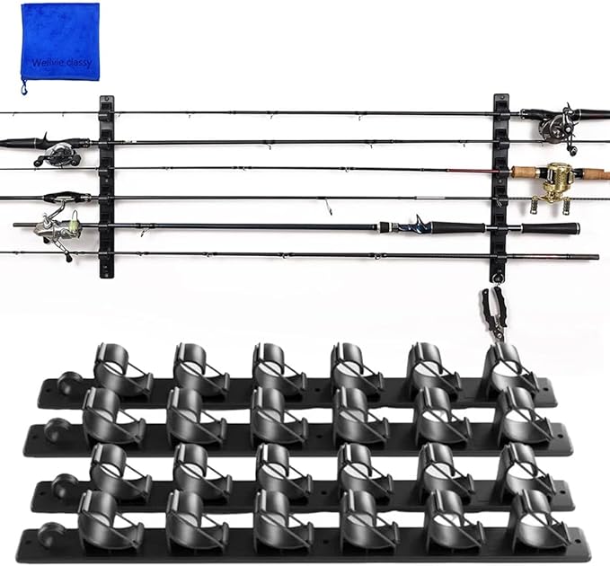 最大6本の釣り竿を収納できる、壁掛け・天井取リ付け対応のロッドホルダー