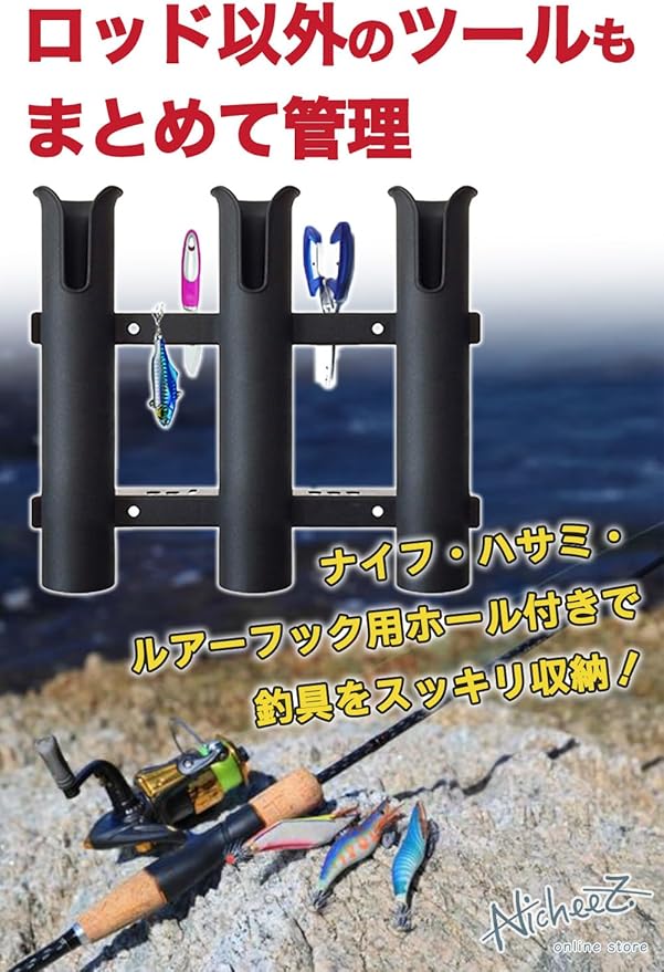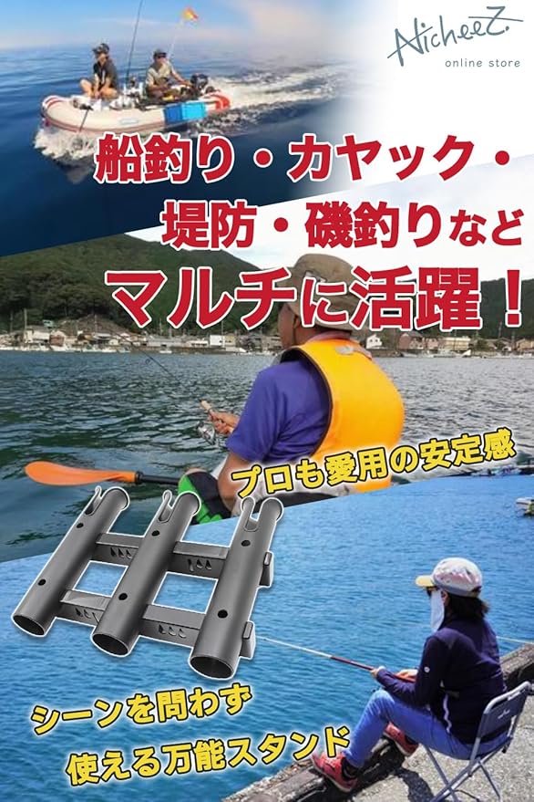 Nicheez ロッド ホルダー 3連 釣竿用 スタンド