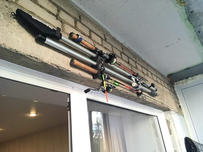 YYST 水平釣り竿収納ラックホルダー 壁取り付けネジ付き - 釣り竿なし - 釣り竿8本を収納可能