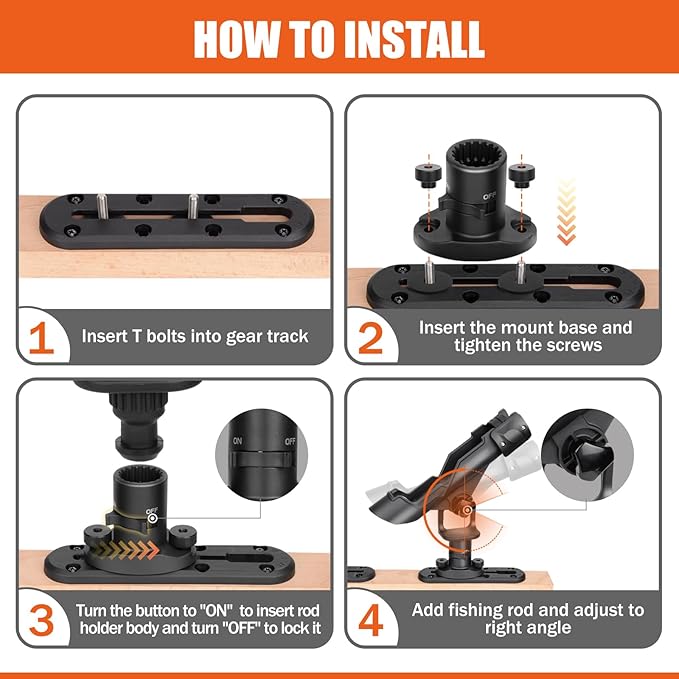 【2つの取り付け方法】T型ネジでトラックに簡単取り付け、または先尖ネジで船体に直接固定。レールの有無にかかわらずあらゆるカヤックに対応。